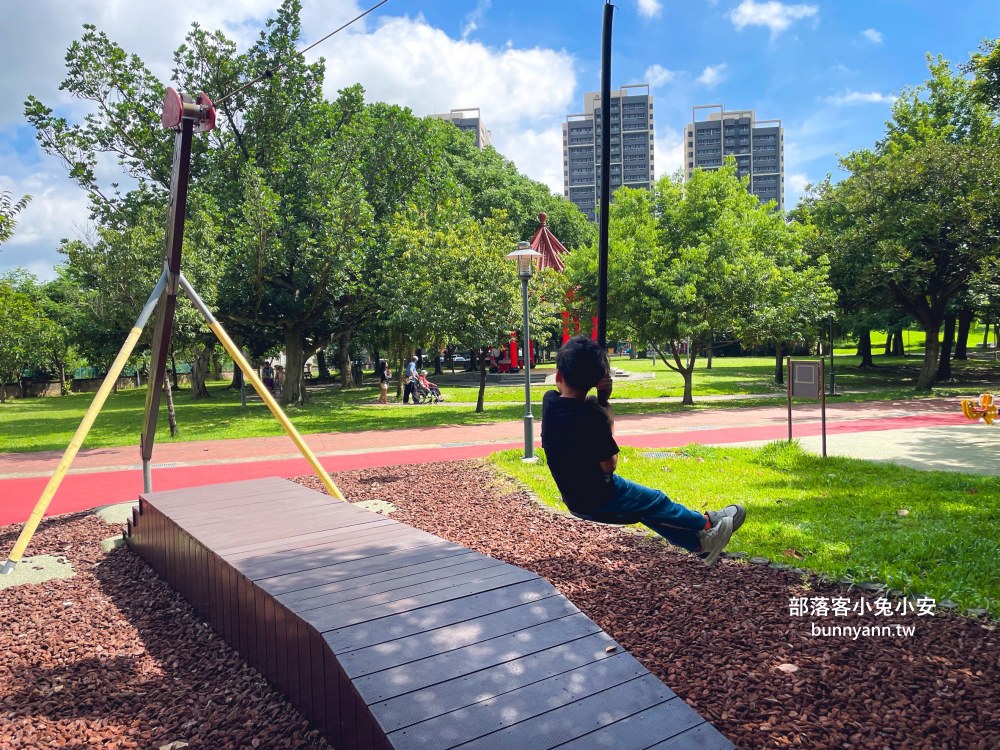 桃園大溪景點推薦大溪埔頂公園,園區設施完善,步道起伏不大好走,全程來回大約30分鐘即可輕鬆繞行整個森林園區一圈,沿途綠意盎然、環境整齊舒適,入口處還有盪鞦韆跟滾輪溜滑梯可以免費玩,這裡是非常適合親子同遊的悠閒系景點,不論是散步還是玩溜滑梯的幸福,都能讓身心徹底療癒!