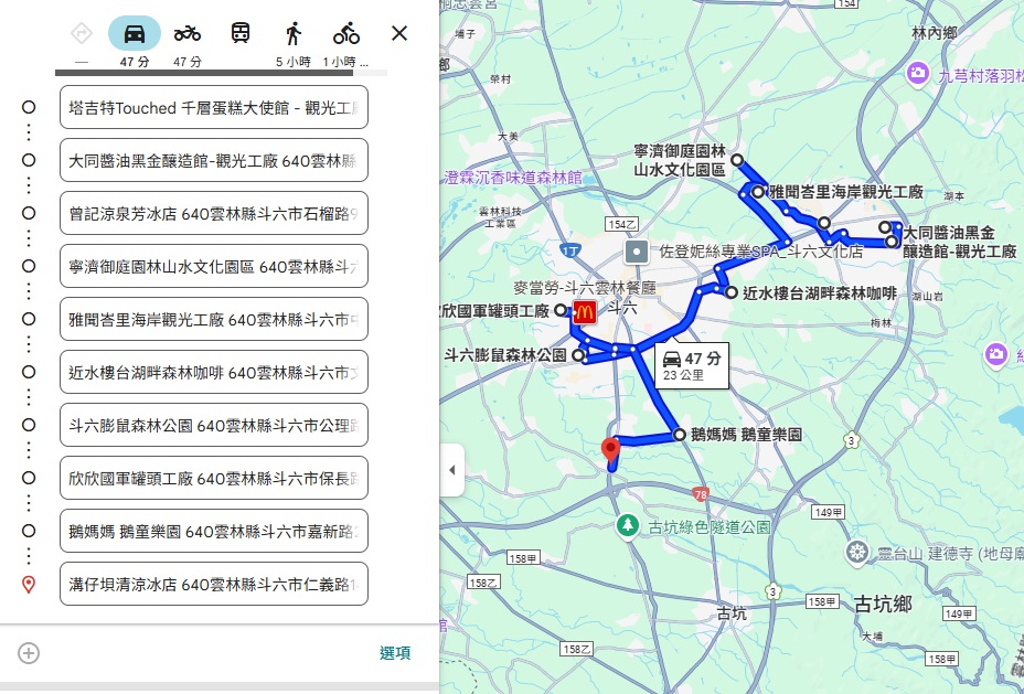 按照斗六景點地圖來看,附近推薦好吃好玩的有大同醬油黑金釀造館、近水樓台湖畔森林咖啡、寧濟御庭、雅聞峇里海岸、松鼠森林公園、鵝童樂園。